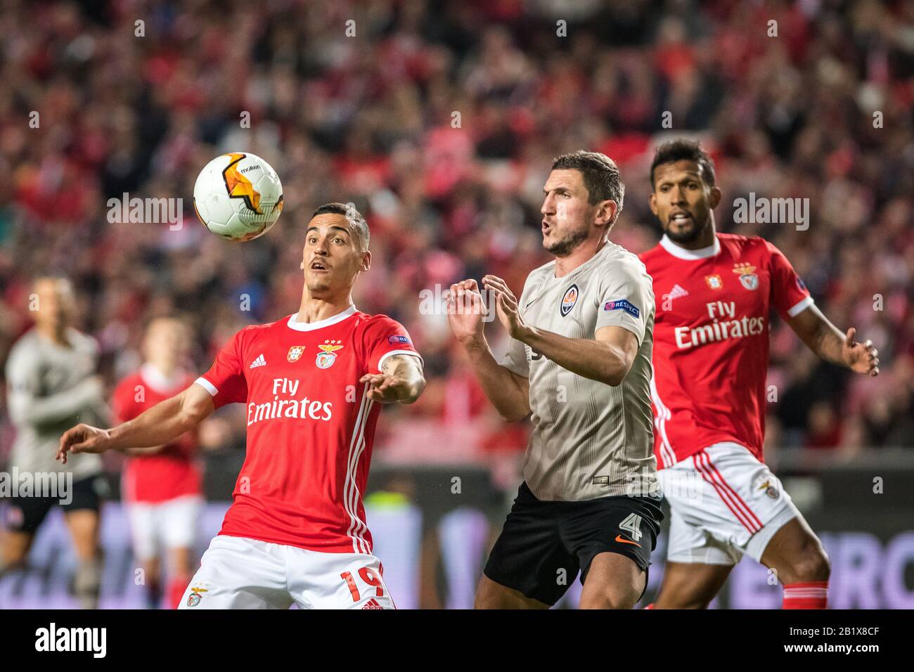 Lisbon Portugal 27th Feb 2020 Chiquinho Francisco Leonel Of Sl Benfica Vies For The Ball With Serhiy Kryvtsov Of Fc Shakhtar Donetsk Are Seen In Action During The Uefa Europa League 2nd